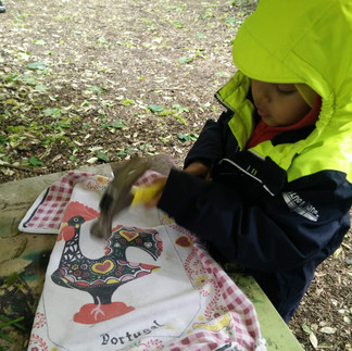 Extension Activity: We encouraged the children to think about something symmetrical that they would like to print. We asked them why and what made them choose the natural materials that they picked. We encouraged them to count the natural materials they found as they placed them in position on the paper and we gave each child the opportunity to use technology by photographing either the natural objects that