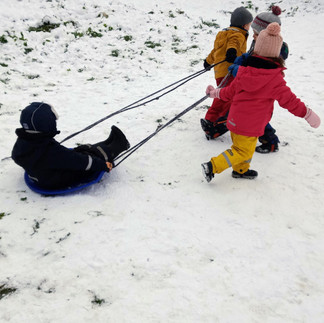 Our last activity was definitely one of the best - having fun in the snow! The children made snow angles, a snowman, we had many, many snowball fights (where the practitioners strangely seemed to always be on the losing side..?) and we pulled the children around the field on a saucer sled which was brilliant fun, very good exercise but slightly exhausting after a while - phew!